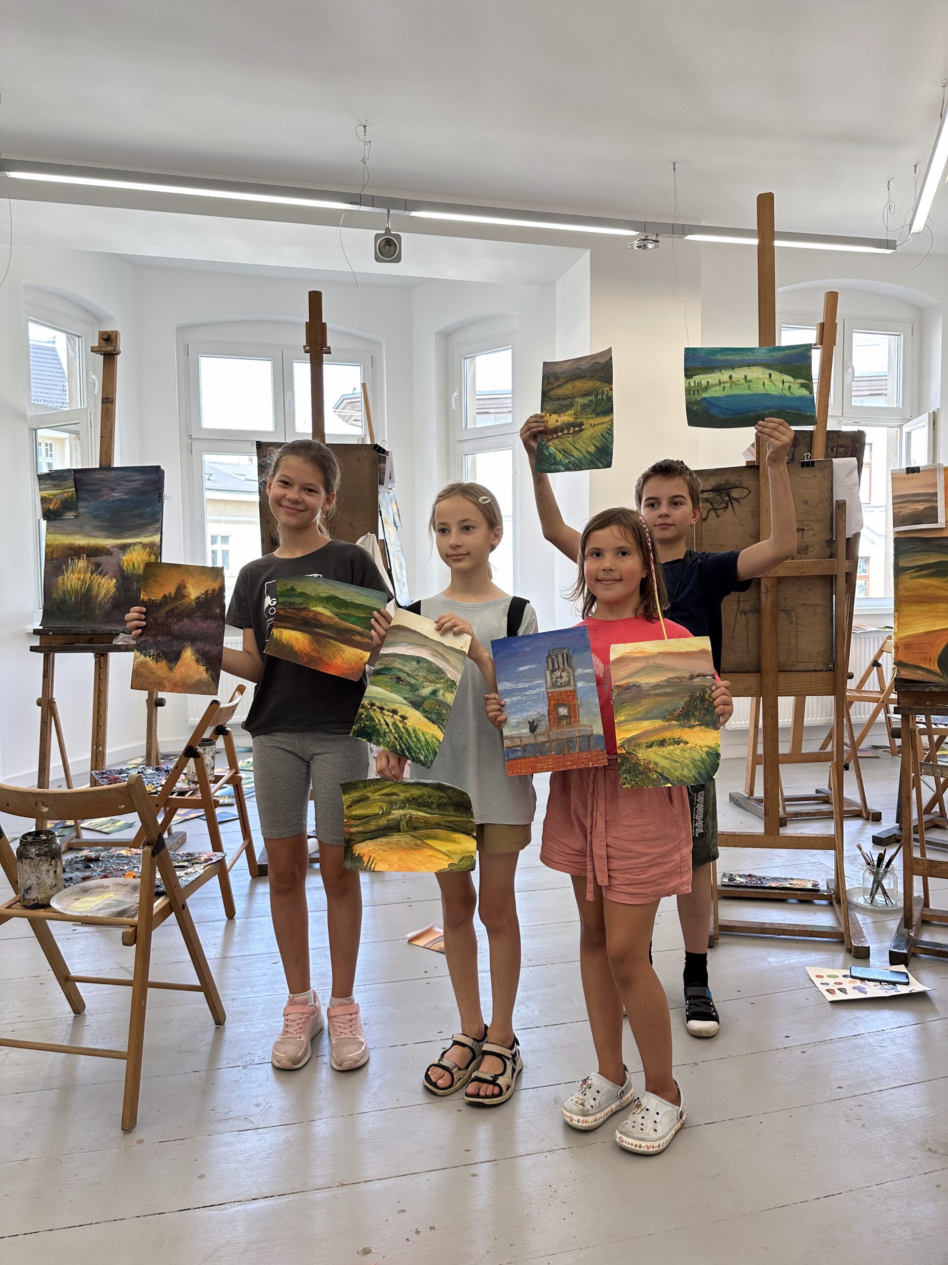 - intensywnie pracujemy nad kompozycją, szkicem, umiejętnością wykorzystania koloru, perspektywy i światłocienia,