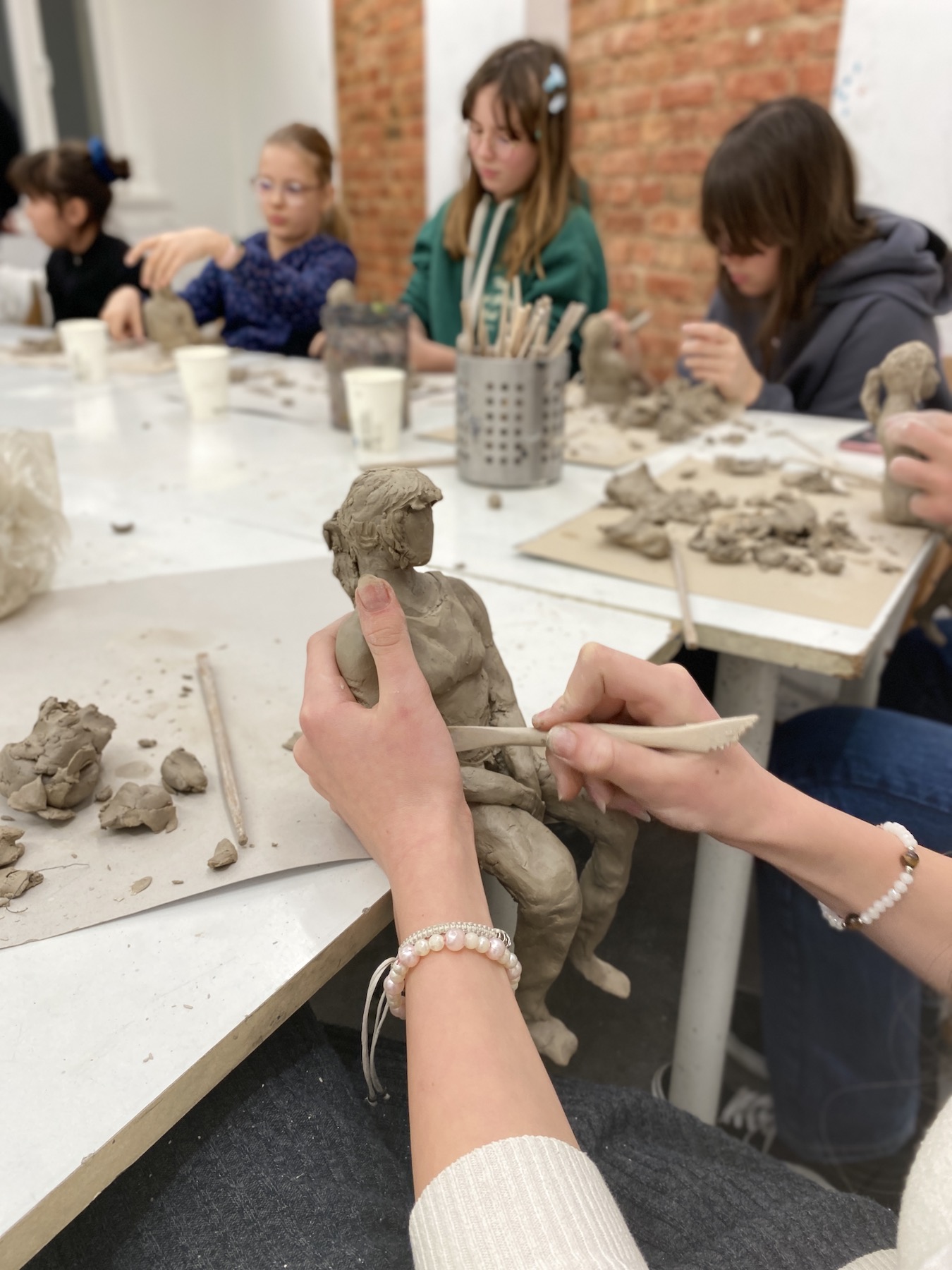 - realizujemy tematy egzaminacyjne czyli rysujemy, malujemy i rzeźbimy w glinie.